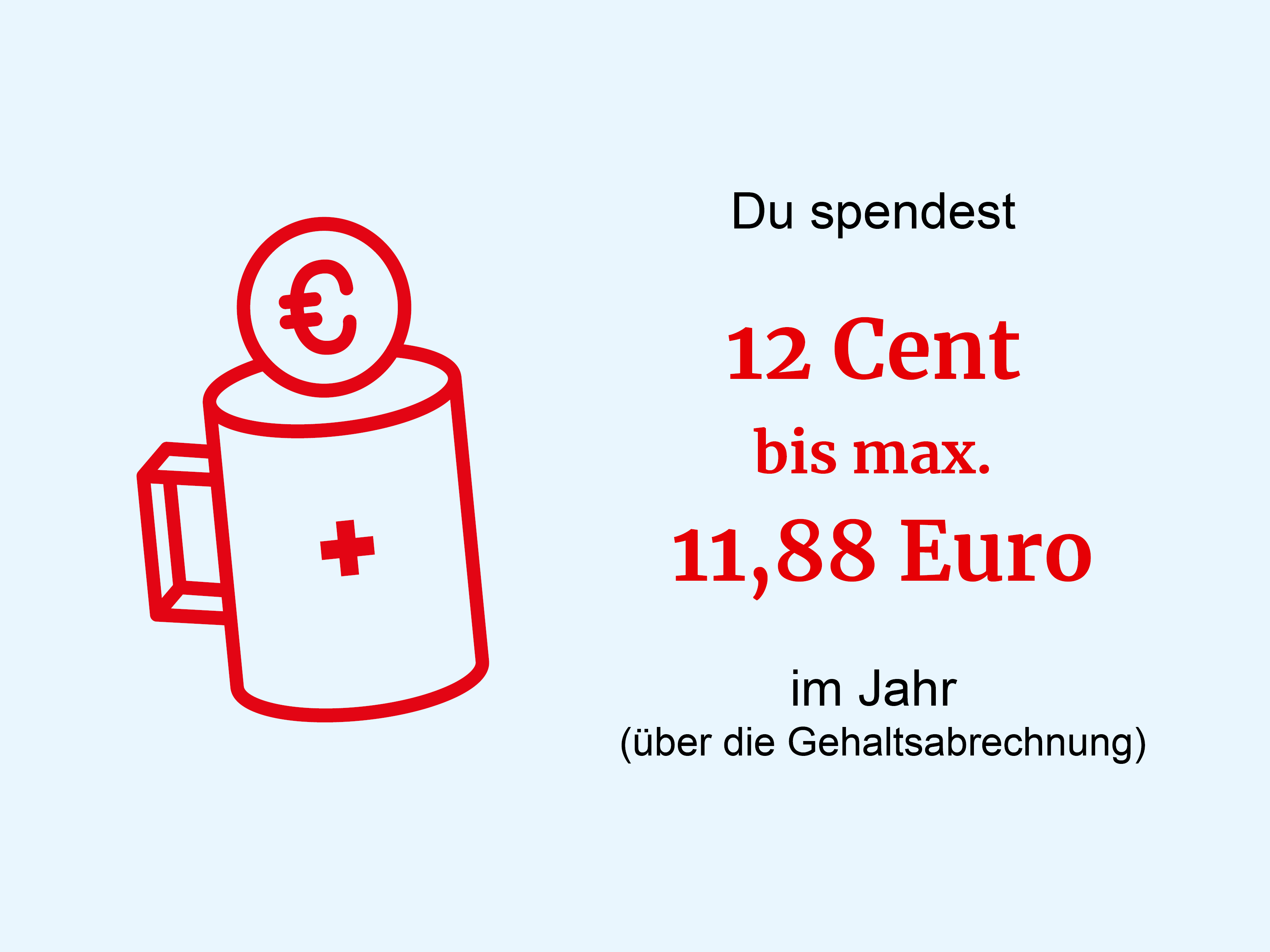 Jährlich sind das minimal 0,12 € und maximal 11,88 € je Spender*in. Der DRK-Helfercent hilft vor allem dann, wenn viele Mitarbeitende mitmachen.