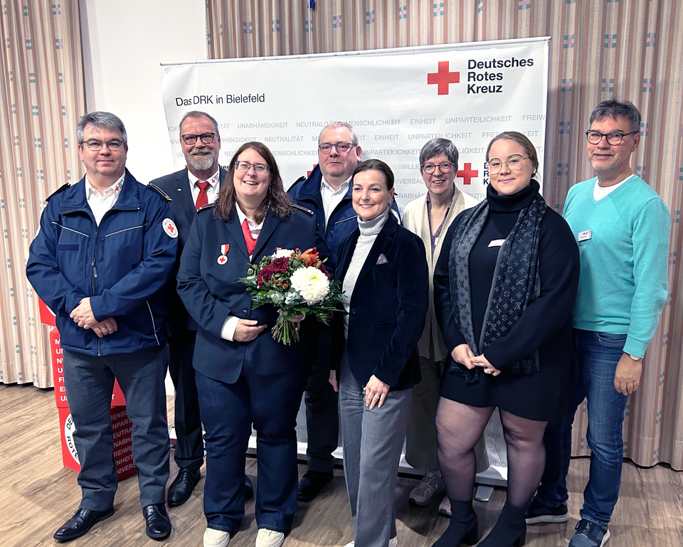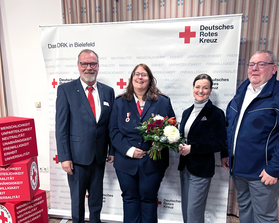 Präsidiumsmitglied Nicole Wittkowski erhielt anlässlich ihres langjährigen und außerordentlichen Engagements für das Deutsche Rote Kreuz eine Verdienstmedaille. Verliehen wird diese besondere Auszeichnung durch den DRK Landesverband Westfalen-Lippe und durfte bei der Kreisversammlung stellvertretend durch Rainer Frenz, Präsident des DRK in Bielefeld, überreicht werden.