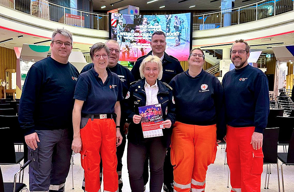 Um zugleich auf die Katastrophenschutz‑Ausbildung aufmerksam zu machen, präsentierte sich das DRK Ende Januar beim WDR‑Stadtgespräch und stellte dort seinen ‚Katastrophenschutz aus der Kiste‘ vor. Das DRK-Team zeigte anschaulich, wie sich aus standardisierten Modulen innerhalb kurzer Zeit funktionsfähige Einsatzstrukturen aufbauen lassen. Die Präsentation gab dem Publikum einen praxisnahen Einblick in die Arbeit des Katastrophenschutzes und verdeutlichte die Bedeutung gut geschulter Ehrenamtlicher im Ernstfall.